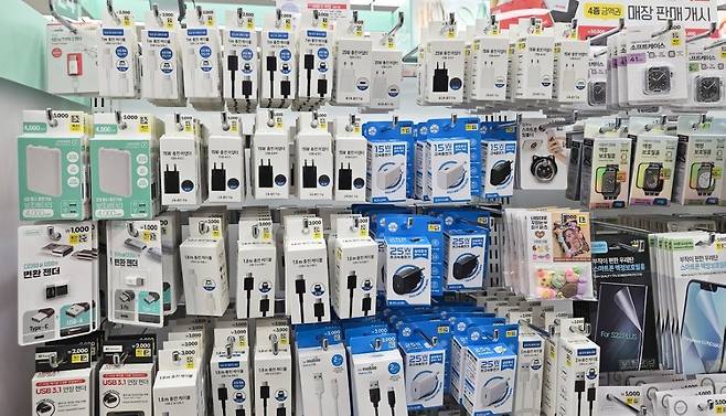 충전기 구입을 위해 다이소몰에서 확인해 보니 재고를 보유하고 있는 매장이 거의 없네요. 다행히 퇴근 길에 있는 신도림 다이소에 재고가 있어 픽업 서비스를 신청했습니다. 매장에 도착해보니 이곳 매장에는 충전기와 케이블 재고가 넉넉히 있네요. 충전기를 픽업하고, 삼성 정품 동일 사양이라는 C타입 케이블과 저출력 기기 충전을 위해 OTG 젠더도 함께 구입했습니다.