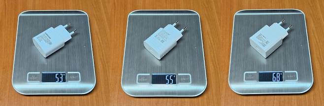 무게는 53g(삼성 정품), 55g(솔루엠), 68g(알에프텍) 이었습니다.