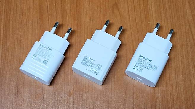 삼성 정품, 솔루엠, 알에프텍 모두 입력, 출력, 지원 충전 규격이 동일했습니다. 제조 공장도 모두 베트남에 있는 공장에서 제조되었습니다.