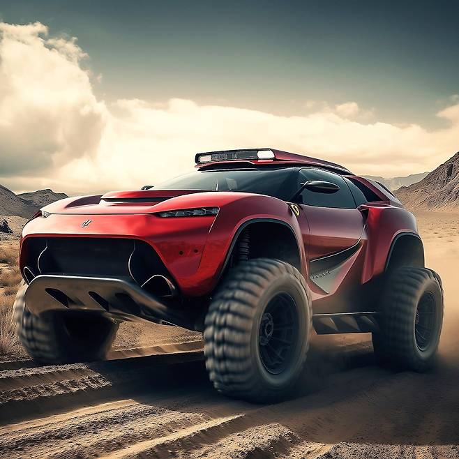 소셜미디어 계정 ‘coldstar.art’에서 활동하는 스웨덴 AI 보조 디지털 아티스트 ‘Thor’는 최근 페라리 푸로산게와 롤스로이스 컬리넌 등의 오프로드 성능을 극대화한 사막용 ‘듄 버기’를 선보였다.