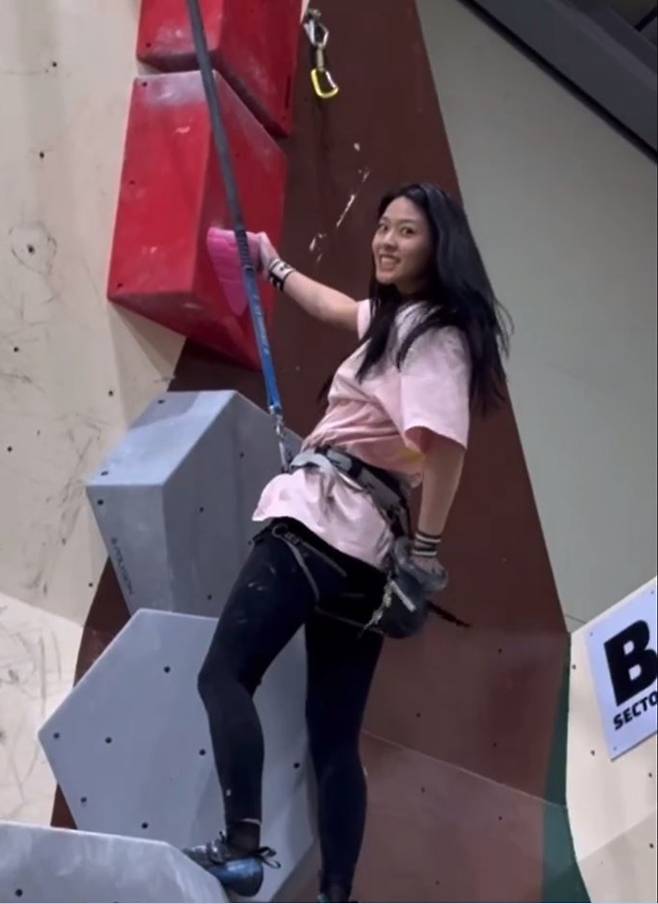 공개한 사진과 영상에서 설현은 반팔 니트 티셔츠에 그레이 팬츠를 착용한 나들이룩과 블랙 레깅스에 핑크 반팔 티셔츠의 클라이밍 웨어로 탄탄한 몸매를 과시했다.
