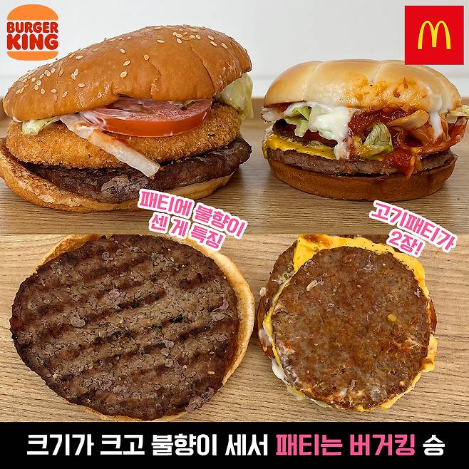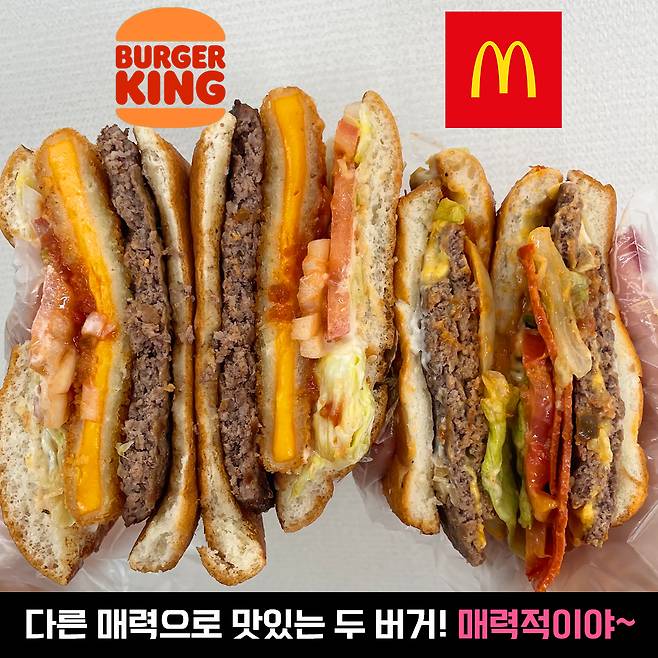 이렇게 두 개를 양옆에 두니까 비교과 더 잘 되죠? 버거킹이 크기가 압도적으로 컸어요. 버거킹 옆에서 맥도날드는 쪼꼬미버거가 됐네요.