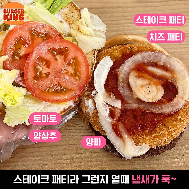 버거킹의 패티는 그릴에 구웠는지 그릴 모양이 있고 그래서 그런지 불 향이 쎈 것이 특징이랍니다.