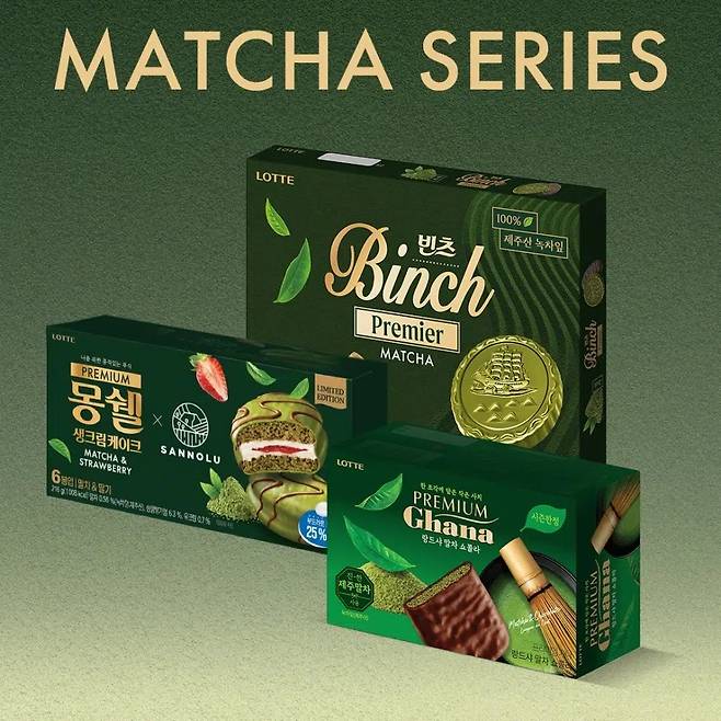 롯데웰푸드의 말차 디저트 시리즈 2탄이 나왔다. 빈츠 프리미어 말차, 프리미엄 몽쉘 말차 & 딸기, 프리미엄 가나 랑드샤 말차 쇼콜라 3종. 몽쉘은 제주 말차를 기반으로 한 카페 ‘산노루’와 협업했고, 프리미엄 가나 랑드샤도 제주산 말차로 만들었다. 빈츠 프리미어 말차는 상시 판매, 몽쉘과 가나 랑드샤 말차 쇼콜라는 시즌 한정 판매 제품.