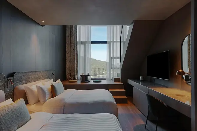 가격대: 비수기 평일 기준 20만 원대부터 (여기 어때, 아고다 등 예약 어플 활용 권장)