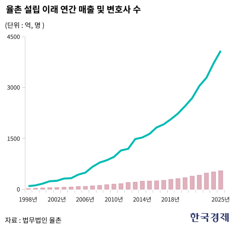 1997년 변호사 10명, 매출 26억원에서 출발했지만 현재 변호사 540명 규모로 커졌고, 지난해 매출은 4080억원을 기록했다. 변호사 수는 약 50배, 매출은 156배 불어난 셈이다. 다만 이러한 고속 성장에도 김앤장법률사무소(1973년), 법무법인 광장(1977년) 등 ‘1세대 로펌’보다 연혁은 짧지만, 외형 확장만 좇는 성장과는 결이 달랐다는 평가다. 내부 시스템과 협업 문화를 정착시키며 내실을 다졌고, 인공지능(AI) 시대에도 빠르게 적응해 경쟁력을 갖췄다.