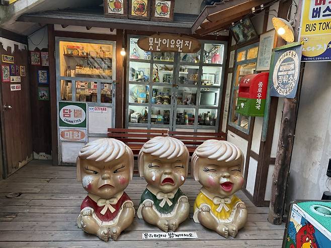 이름부터 독특한 못난이 유원지는 마치 80~90년대의 유원지를 그대로 옮겨 놓은 듯한 분위기를 자랑하는 곳이에요. 이곳에 들어서는 순간 낡은 포스터, 옛날 장난감, 불량식품이 가득한 문방구가 반겨줍니다.