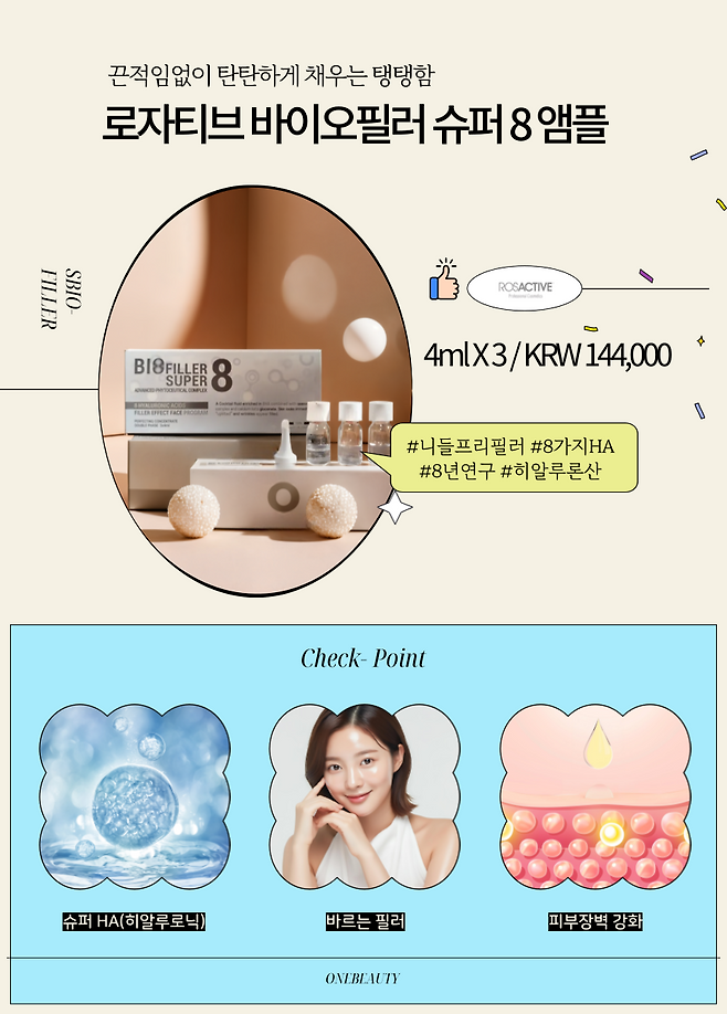 이걸 완벽하게 충족하는 제품이 바로 로자티브의 바이오필러 슈퍼8 앰플이야.