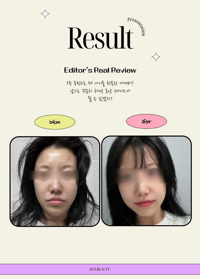 3주로 이 정도 변화인데, 3개월, 6개월 하다 보면 나이를 역주행하는 것도 무리는 아닐 것 같아!