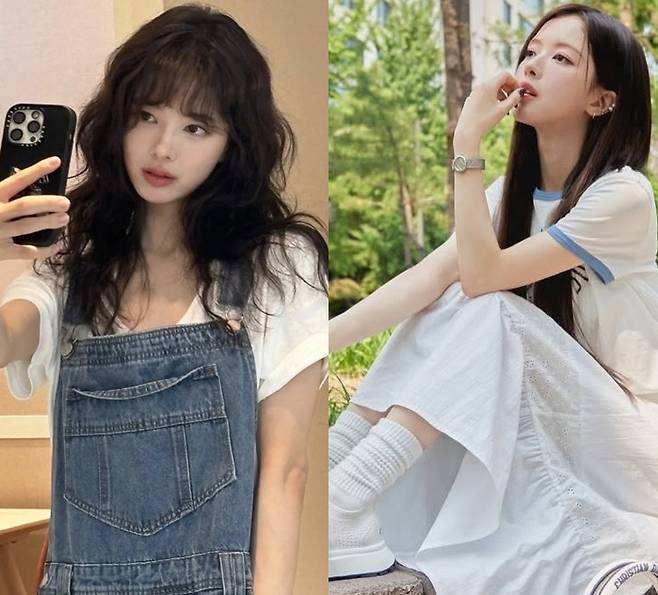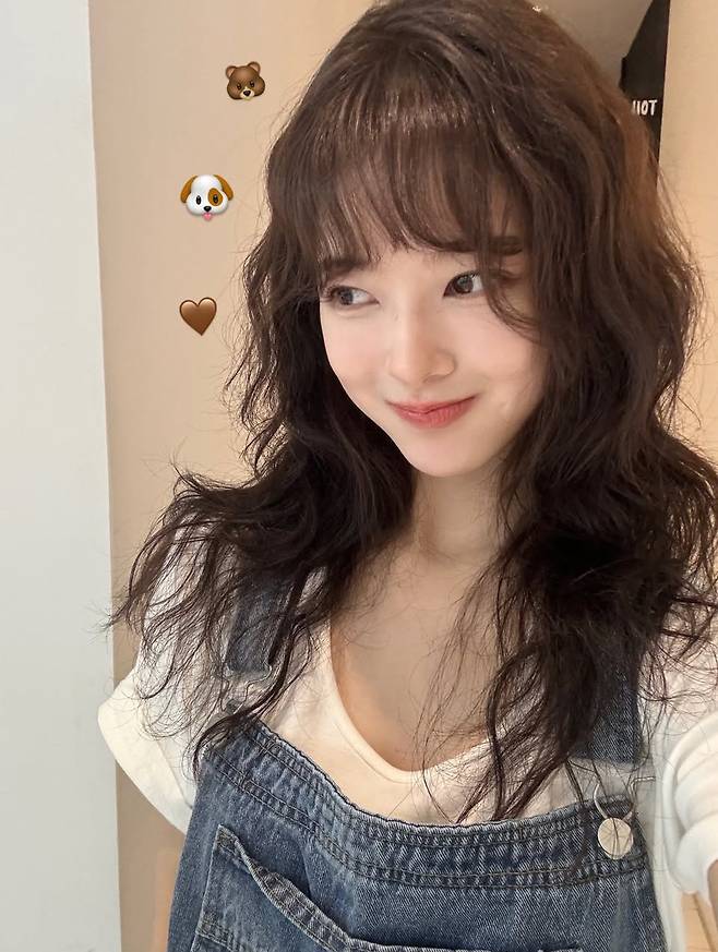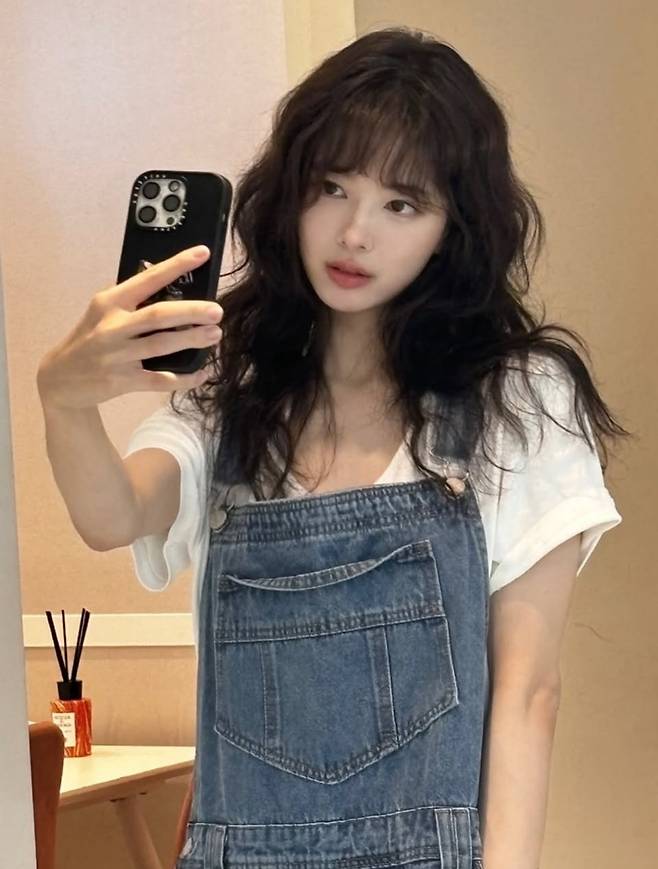 내추럴 웨이브 헤어스타일과 데님 오버올을 활용해 소녀스러운 느낌과 동시에 캐주얼한 분위기를 살렸습니다.