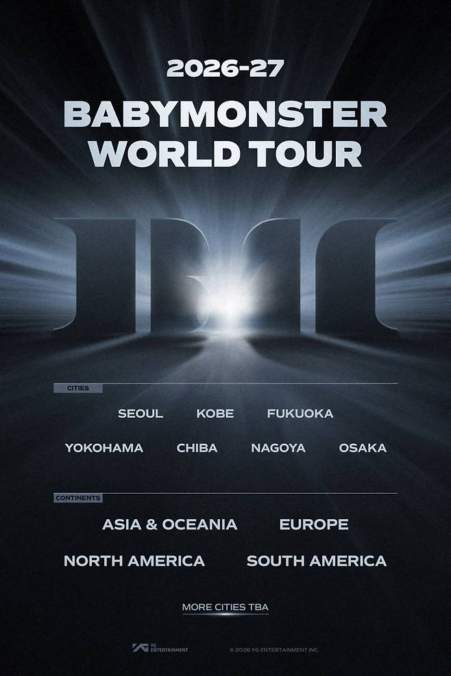 소속사 YG엔터테인먼트는 16일 공식 블로그에 ‘2026-27 BABYMONSTER WORLD TOUR ANNOUNCEMENT’를 게재했다.