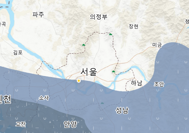 <사진> 오늘 오후 2시 일기예보. 올림픽공원이 있는 송파구에 비가 예보되어 있다