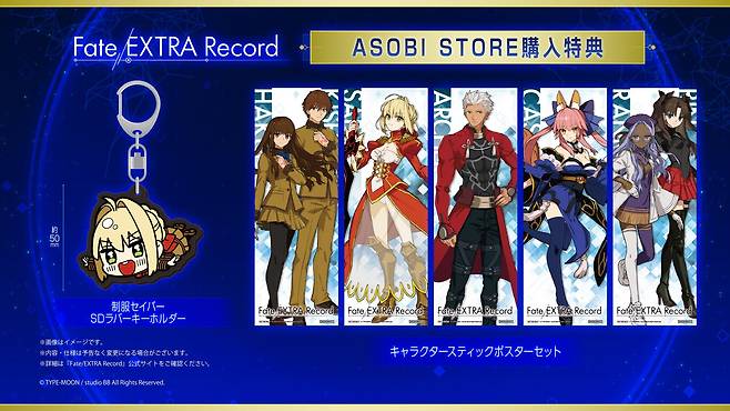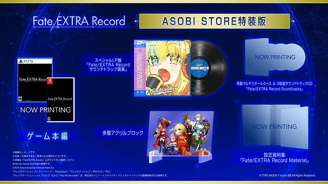 한편, 반다이남코 엔터테인먼트는 발매 연기 소식과 함께 반다이남코 엔터테인먼트 직영몰인 아소비 스토어 초특장판과 특장판을 공개했다. 초특장판에는 게임 타이틀을 비롯해 특제 멀티 스틸 케이스, 사운드 트랙, 설정 자료집, 스페셜 LP판 사운드트랙 전집, 시리얼 넘버 포함 신규 일러스트, 다층 아크릴 블록이 수록되어 있다. 특장판에는 파인그래프가 제외되어 있다. 또한 아소비 스토어에서 구매시 교복 세이버 SD 키홀더와 캐릭터 스틱 포스터 세트가 증정된다.