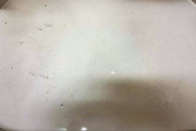 잠시 후 물로 헹궈보면 기름때가 제거된 것이 보이는데요.