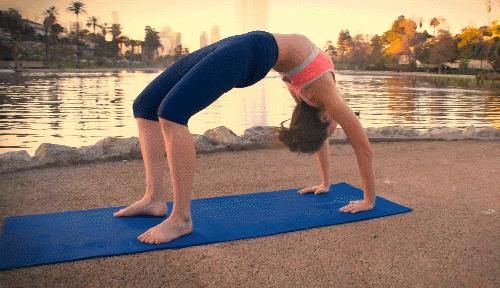 매트에 등을 대고 누운 뒤, 손바닥과 발바닥을 바닥에 단단히 고정합니다. 엉덩이와 가슴을 천천히 들어 올리며 몸 전체를 확장시키세요. 머리를 자연스럽게 젖히고 자세를 유지합니다.