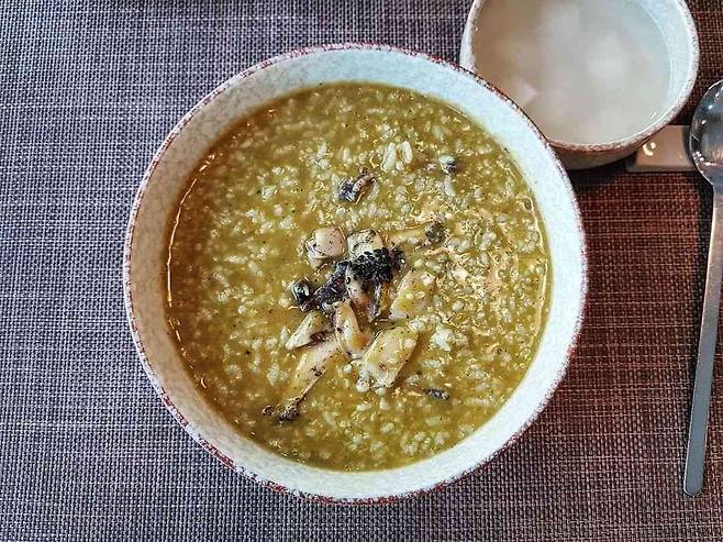 ▲메뉴: 제주보말죽 24,000원 / 버섯굴죽 12,000원 / 완도전복죽 12,000원