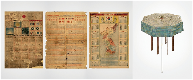 세 장의 달력도 빼놓아선 안되는 전시품입니다. 각종 기념일이 적힌 달력은 일상적인 물건이지만 때로는 시대적 상황을 기록하는 역사책과 같은 역할을 합니다. 1945년과 1946년, 1949년 달력 비교가 이를 잘 보여줍니다. 1944년 제작했을 1945년 달력에는 8월 15일에 아무런 표시가 없지만 1946년 달력은 이날을 ‘조선민족해방기념일’로 기록했습니다. 그러다 1949년에는 이날을 ‘광복절’로 바꿔 표기했습니다. 이 부분만 보더라도 광복을 전후로 한 우리나라의 불안정한 사회상을 유추할 수 있습니다. 몇 해에 걸쳐 각종 기념일이 어떻게 생겨나고 소멸했는지를 살피는 것도 관람에 의미를 더합니다.