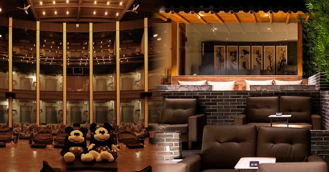 영화관에 들어서기 전 메리그라운드 공간에는 고즈넉한 한옥 정원을 연상케하는 인테리어가 눈에 띕니다. 음식점부터 오락실까지 즐길거리가 많기도 해 아이들과 함께 방문해도 좋을 것 같은데요.