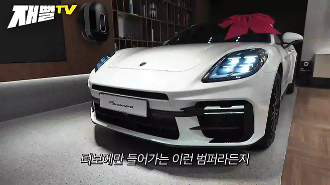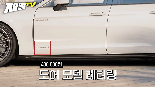 "여기에 e-하이브리드 들어갔잖아, 사람들이 그냥 파나메라 4 E-하이브리드인 줄 알 수가 있어... 난 요게 뭔가 터보 S라는 게 뭐 하나만 딱 붙여줬으면은... 그냥 파나메라 4인 줄 알까 봐, 그럼 너 그 가슴에 스크래치 나는 거잖아."