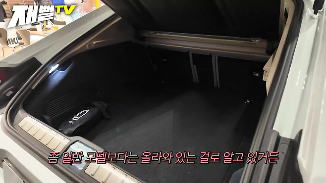 트렁크 공간: 하이브리드 모델의 숙명이다. 차체 하단에 배터리가 탑재되면서 일반 파나메라 모델보다 트렁크 바닥이 약간 높게 설계되어 있다.