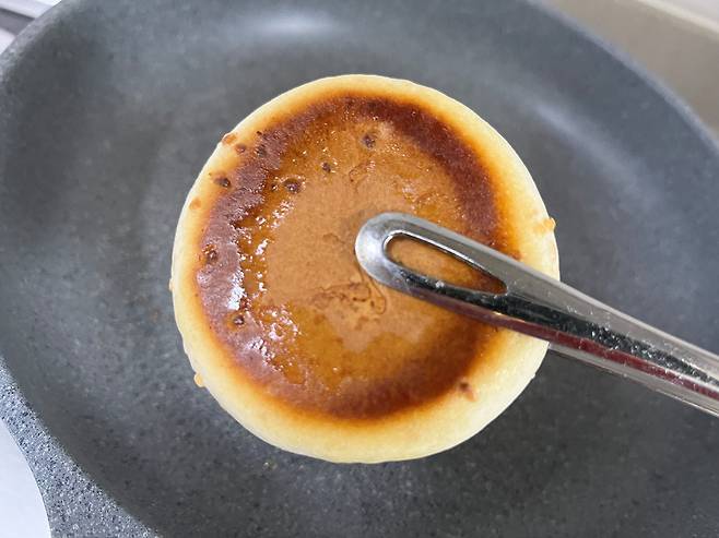 겉면이 갈색으로 변할 때까지 구워준 후 뒤집어서 반대쪽도 굽습니다. 이렇게 하면 속까지 열이 전달되어 안에 든 꿀도 살짝 녹습니다.