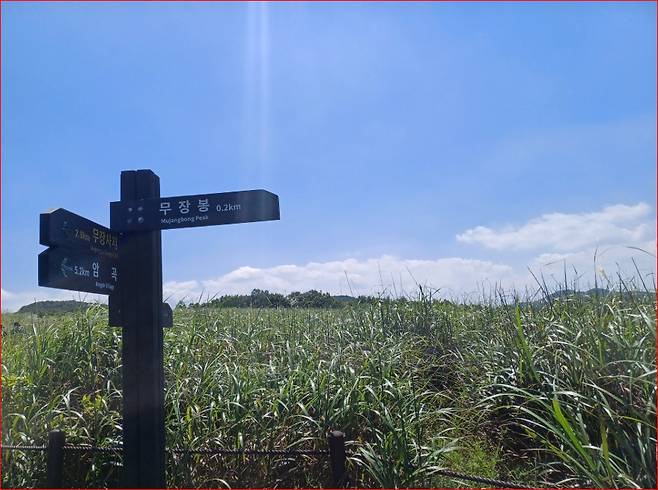 무장산 억새군락지까지는 주차장에서 약 6.5km 거리이며, 계곡을 따라 오르는 길은 완만해서 여름철에도 비교적 걷기 수월합니다. 정상부에서는 탁 트인 능선과 억새밭, 그리고 바람을 한껏 느낄 수 있죠.