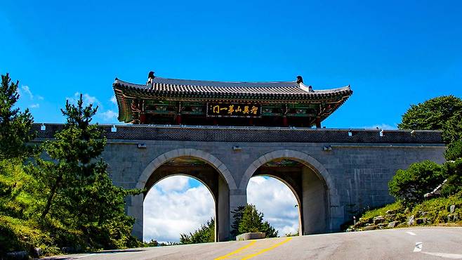 지안재의 여운이 채 가시기도 전에, 드라이브는 곧 해발 773m의 오도재로 이어진다. 그 꼭대기에서 마주하게 되는 거대한 지리산제일문은 단순한 조형물이 아니라, 지리산을 향한 첫 관문이라는 의미를 담고 있다.
