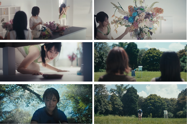 뮤직비디오의 본격적인 스토리는 꽃꽂이 수업에 지각을 간신히 모면한 히나가 우연한 계기로 시연의 사진과 일기장을 발견하게 되며 시작됩니다. 시연의 발자취를 따라가며 이윽고 어느 숲 속으로 들어가게 된 히나는 그곳에서 무언가를 발견하게 되는데요. 히나는 안간힘을 써 무언가를 끄집어내고, 시연이 사진 속에서 있던 장소에 도착해 웃음을 짓는 모습을 보입니다.