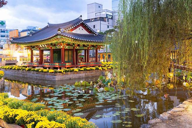 원주 시내 중심부에 있어 접근성이 좋고, 고즈넉한 건축물 사이를 산책하기도 좋고, 또 밤에는 조명이 켜져 운치 있는 야경까지 감상할 수 있죠. 특히 여름에는 연못 위 누각 주변으로 연꽃이 피어나 꽃구경 하기에도 제격이랍니다.