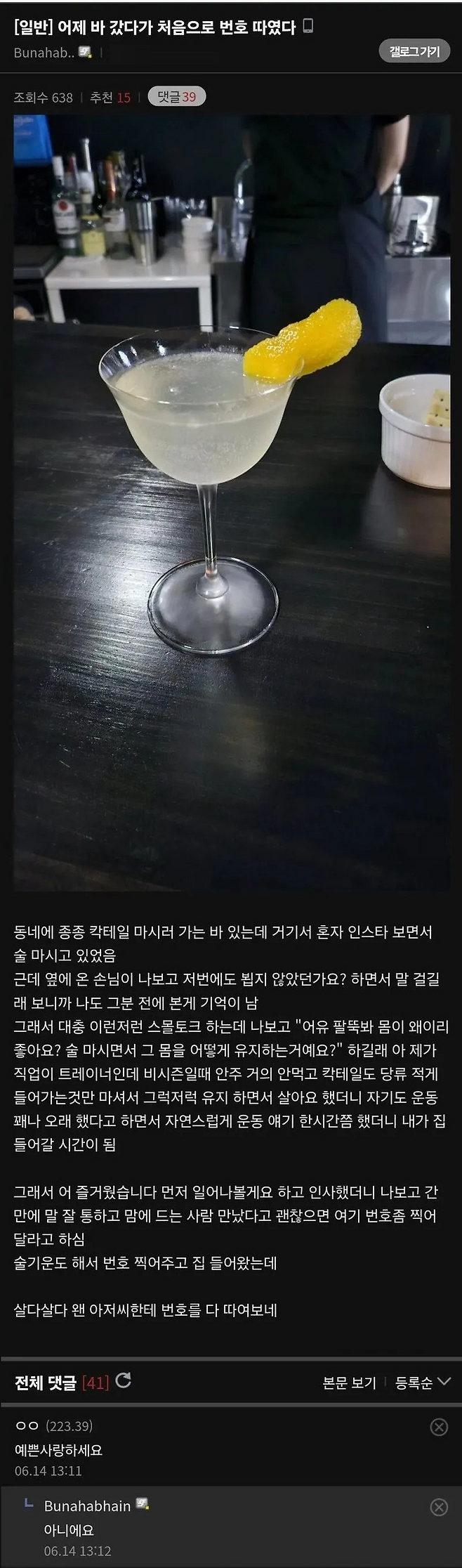 칵테일바에서 번호 따인 남자