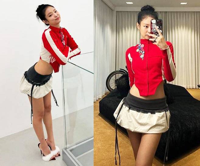 또, 제니는 너무 짧은 투톤 미니스커트를 매치해 러블리하고 페미닌한 이미지를 돋보였습니다.