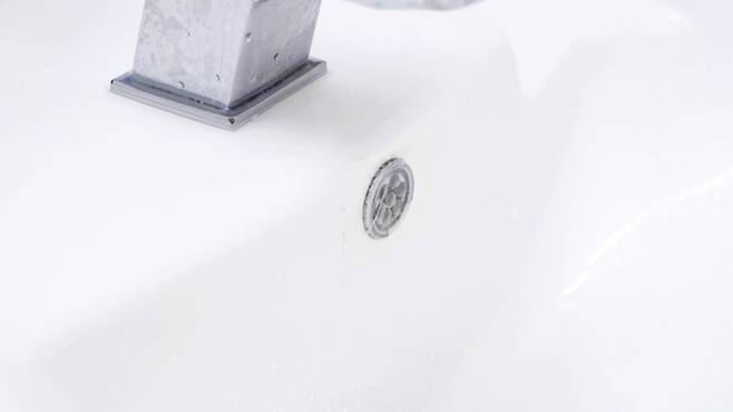 이후 다시 세면대 부품을 결합시켜 주세요. 그리고 따듯한 물로 내려 보내면 다시 물이 잘 내려가는 것을 볼 수 있어요.
