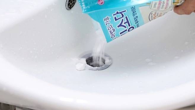 두 번째는 바로 베이킹소다를 활용하는 방법인데요. 베이킹 소다 적당량을 세면대 배수구에 잘 넣어 주세요.