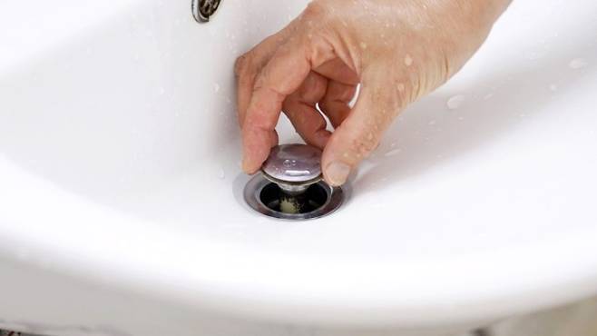 이후 다시 세면대 부품을 결합시켜 주세요. 그리고 따듯한 물로 내려 보내면 다시 물이 잘 내려가는 것을 볼 수 있어요.