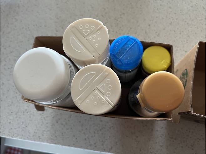 그냥 두면 픽픽 쓰러지는 작은 양념통들은 이렇게 커피캐리어에 정리하면 정말 편해요