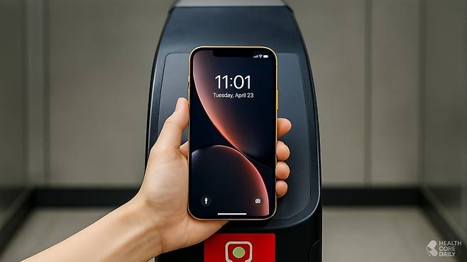 아이폰으로 대중교통을 결제하는 모습. / 헬스코어데일리