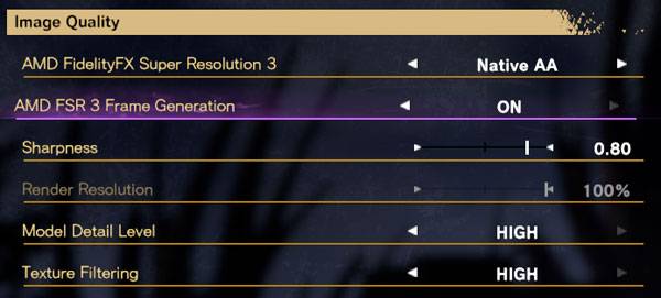 FSR3의 또 다른 특징은 업스케일링 없이 고품질 AA와 샤프닝 기술을 적용할 수 있는 네이티브 AA(Native Anti-Aliasing) 모드도 추가된 것이다. 네이티브 AA 모드는 FSR의 품질 조정 옵션 중 하나로 동작하기에 해당 옵션을 사용할 경우 비활성화되는 일반 AA 기술과 프레임 생성 기술을 조합해 사용하는 것은 불가능하다.