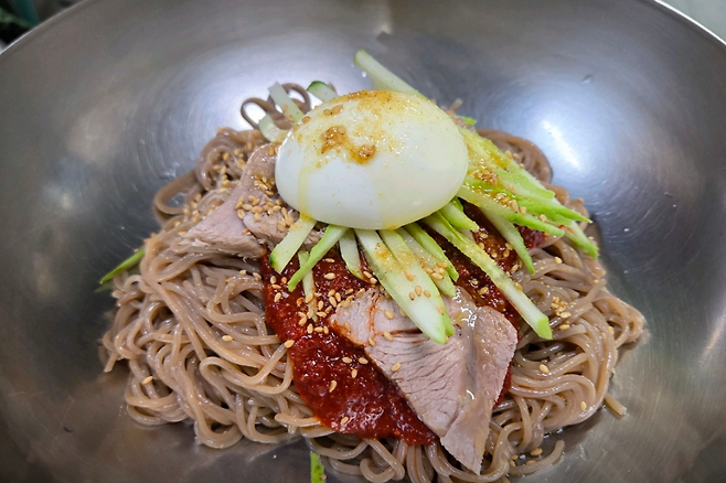 ▶ 메밀냉면: 직접 뽑는 자가제면으로 탱글한 식감과 메밀 향이 진한 맛