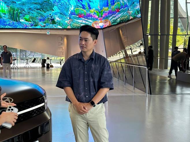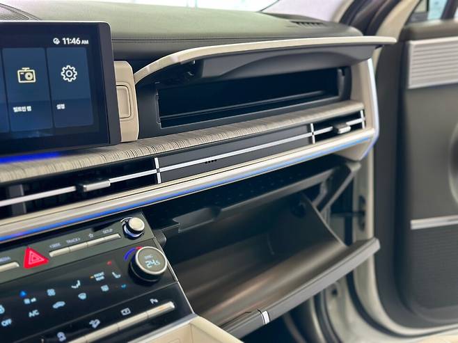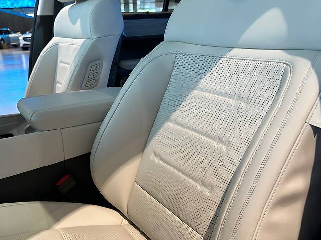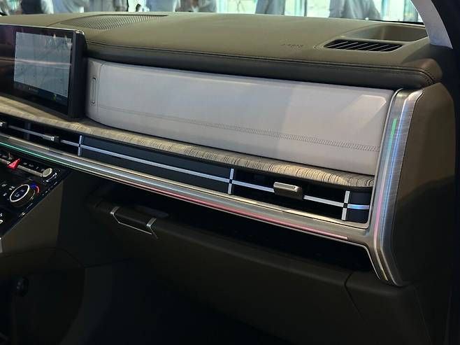 현대 CMF팀 이청 책임연구원은 "대시보드와 시트 등 각 부위에 적용된 스티치의 실 굵기와 패턴이 전부 다르다. 곳곳에 적용된 우드그레인 소재 질감도 고민을 많이 했는데, 코로나 시절 집 앞 공원을 다니면서 나무들을 만져보고 각각 어떤 질감을 가졌는지 조사해 이를 반영했다"고 말했다.