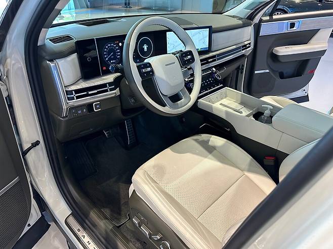 스티어링 휠은 현대차 플래그십 세단 '디 올 뉴 그랜저'를 기반으로 운전자 사용성을 더한 디자인이 적용됐으며, 센터터널에 위치한 듀얼 스마트폰 무선 충전 시스템도 특징이다.