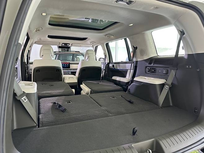 무엇보다 센터콘솔에는 세계 최초로 적용됐다는 양문형 암페스트 콘솔 박스가 적용됐다. 이는 1열과 2열에서 앞, 뒤로 모두 개폐가 가능한데, 싼타페 컨셉트를 적극 반영한 결과물이다.