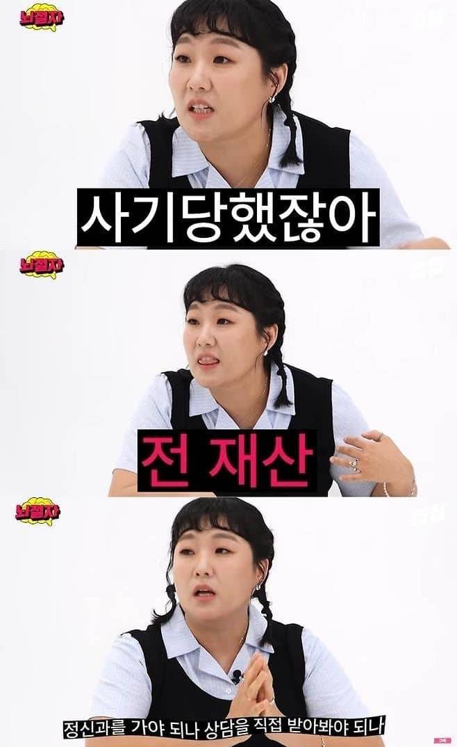 이수지는 "'우리 가족 행복하게 지내자'는 마음으로 내 4억 전 재산을 거기다 몰빵했다. 대출해서 우리 가족 행복하게 지내자 했는데 사기였다"면서 "이 사기꾼이 집 13채를 지어서 팔았는데, 권한없는 시행사 대표였다. 내가 그 사람한테 돈을 줬다"고 말했습니다.
