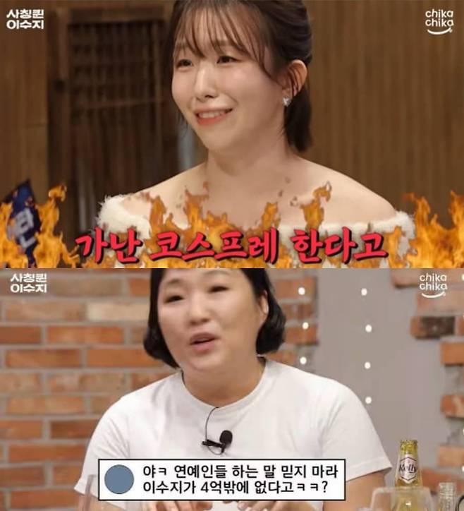 이에 윤가이는 "'나혼자 산다'에 나갔을 때도 가난 코스프레 한다고 댓글을 달더라"라고 억울해 했고, 이를 들은 이수지는 "나 4억 잃었을 때 이걸 누가 유튜브에 올렸는데 베스트 댓글이 '야, 연예인들 하는 말 믿지 마라. 이수지가 4억밖에 없다고?'였다"라며 공감했습니다.