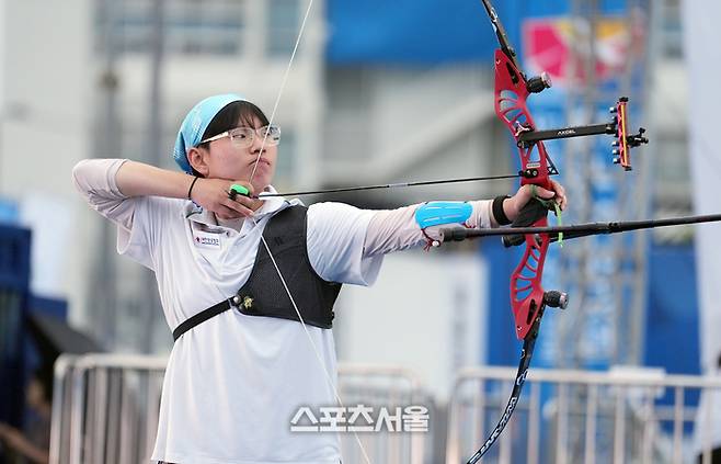 이정한(배재대학교)이 2일 광주광역시 5·18 민주광장에서 열린 ‘현대자동차 정몽구배 한국양궁대회 2025’ 리커브 남자 통합 개인 8강전에서 슈팅을 하고 있다. 2025. 10. 2. 대한양궁협회 제공.