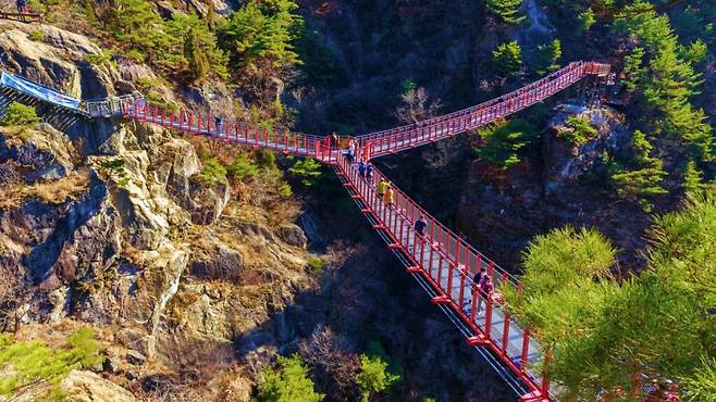 “보기만 해도 아찔한 산속 출렁다리, 다리가 셋이나 있어요!”