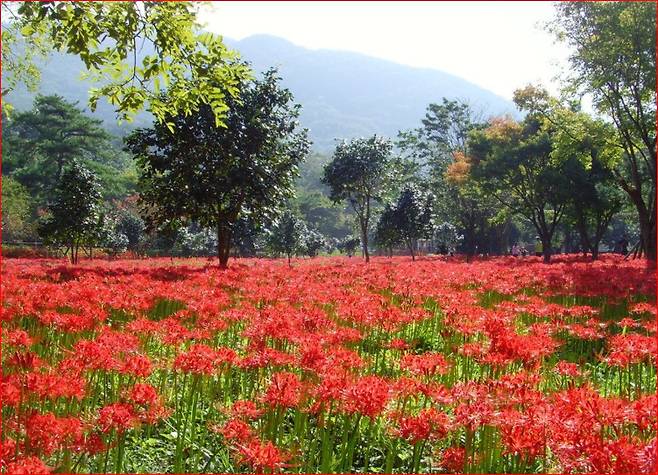 특히 꽃무릇이 만개하는 계절이면, 고찰의 돌담과 전각, 기와지붕이 붉은 꽃물결과 겹쳐져 시간이 멈춘 듯한 장면을 연출합니다. 이곳에서는 불교적 성지의 아우라와 자연의 생명력이 하나로 어우러져, 걷는 이들의 마음을 차분히 비우게 만듭니다.