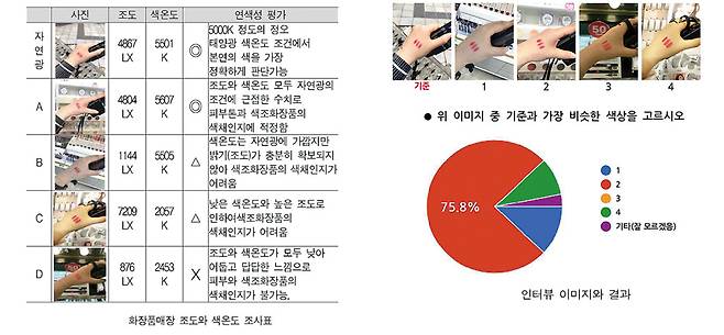 우리가 일상에서 색을 보고 있어서 의식하지 못하곤 하는데, 사실 색을 인지한다는 것은 더 높은 차원의 감각으로 인간을 포함한 포유류의 일부와 조류처럼 고도로 진화된 생물의 전유물이다. 이들의 안구 속 ‘추상체’라는 세포에서 색을 구분하는데, 사물의 색을 정확하게 보려면 연색성과 함께 300~500lux 이상의 조도가 확보되어야 한다. 즉, 고연색성 조명을 사용하더라도 충분한 조도가 확보되지 못하면 높은 연색성을 지각하기 어렵다는 것이다.