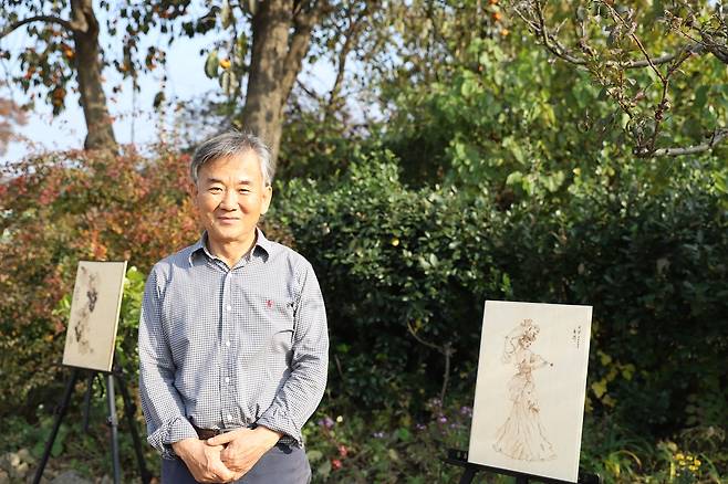 | ▲ 우드버닝 최장덕 작가님 전시회를 열며 40년만에 고향으로 돌아온 후 선친께서 돼지를 키우시던 곳을 개조해 허름한 공방을 만들고, 그 곳에서 평소에 작품활동을 하고 싶었던 그림(유화) 공부를 시작했다. |
