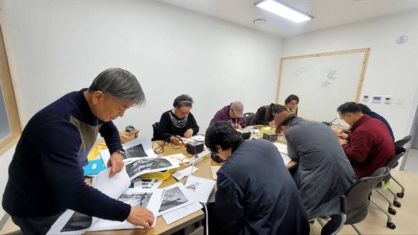 | ▲ 당진북부사회복지관에서 수강생들과함께 매주 월요일마다 수강생들과 함께 우드버닝 작업을 진행한다. |
