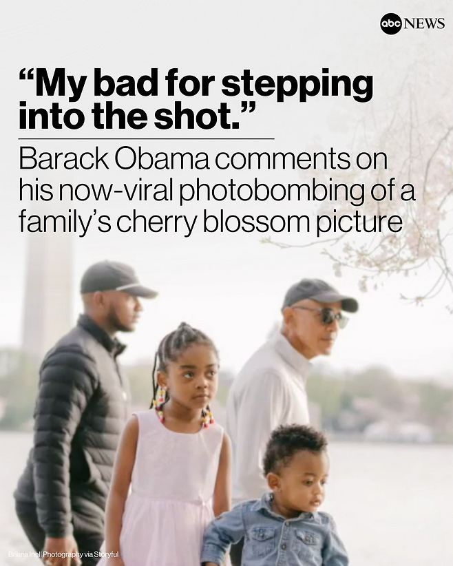 - 오바마가 직접 등판해 “즐거운 시간을 보냈길 바란다”면서 “끼어들어 미안하다(My bad for stepping into the shot)”는 댓글을 남기기도 했다.